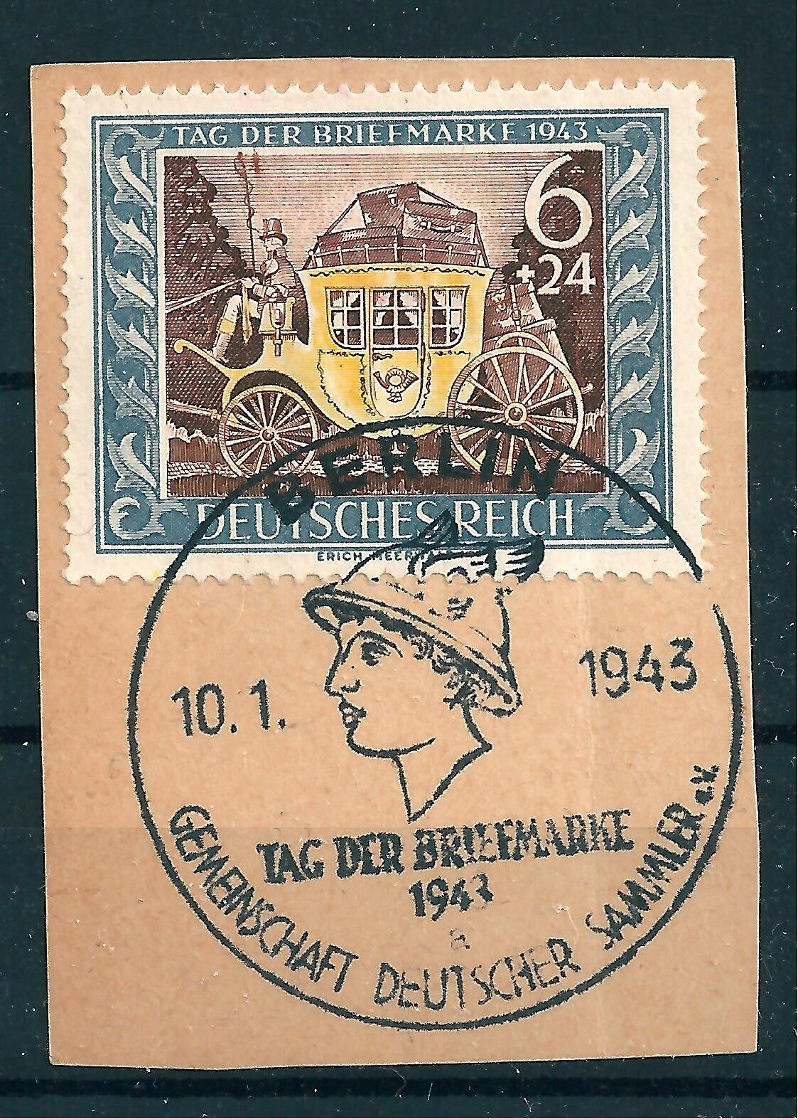 MiNr. 828 auf Briefstück mit Plattenfehler: dicker brauner Strich oben neben der Peitsche unter D von DER