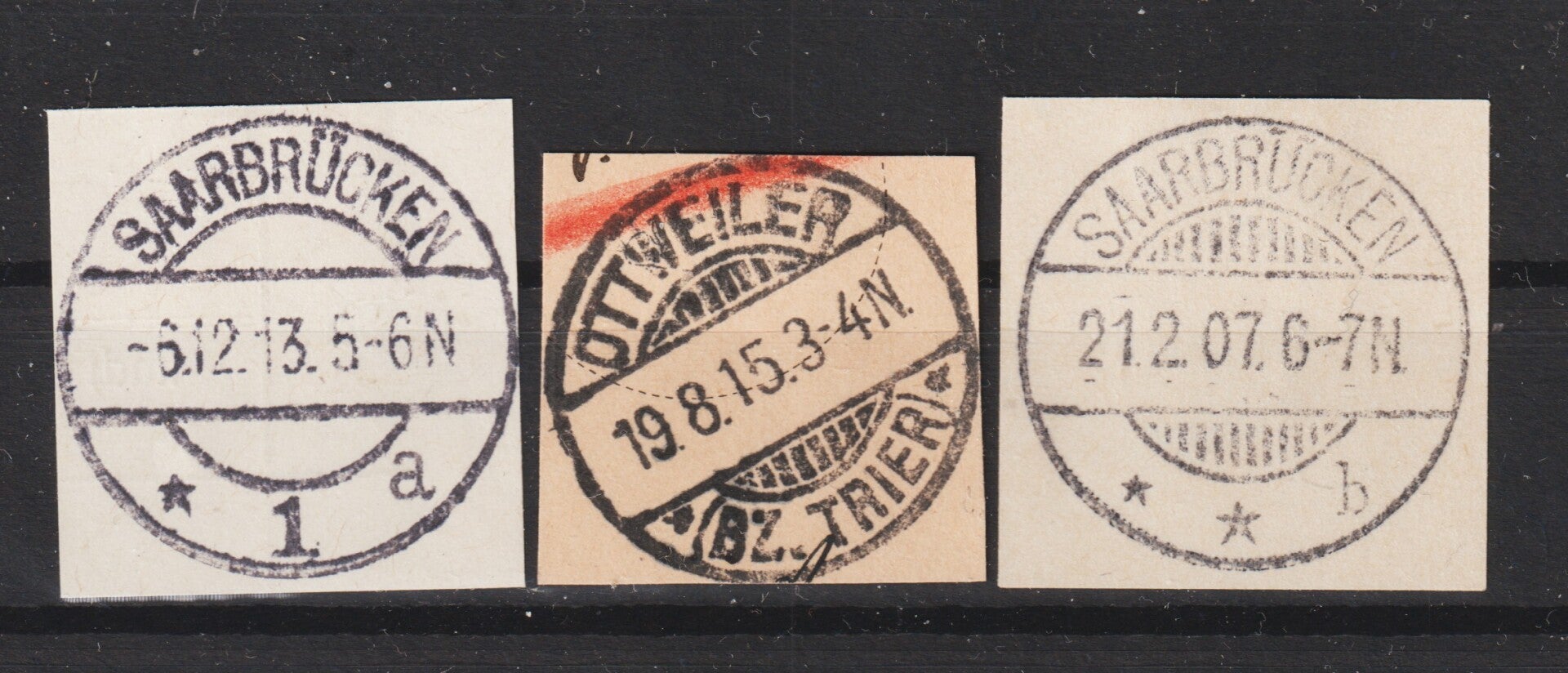 Saar 3 Vollstempel auf Briefstücken