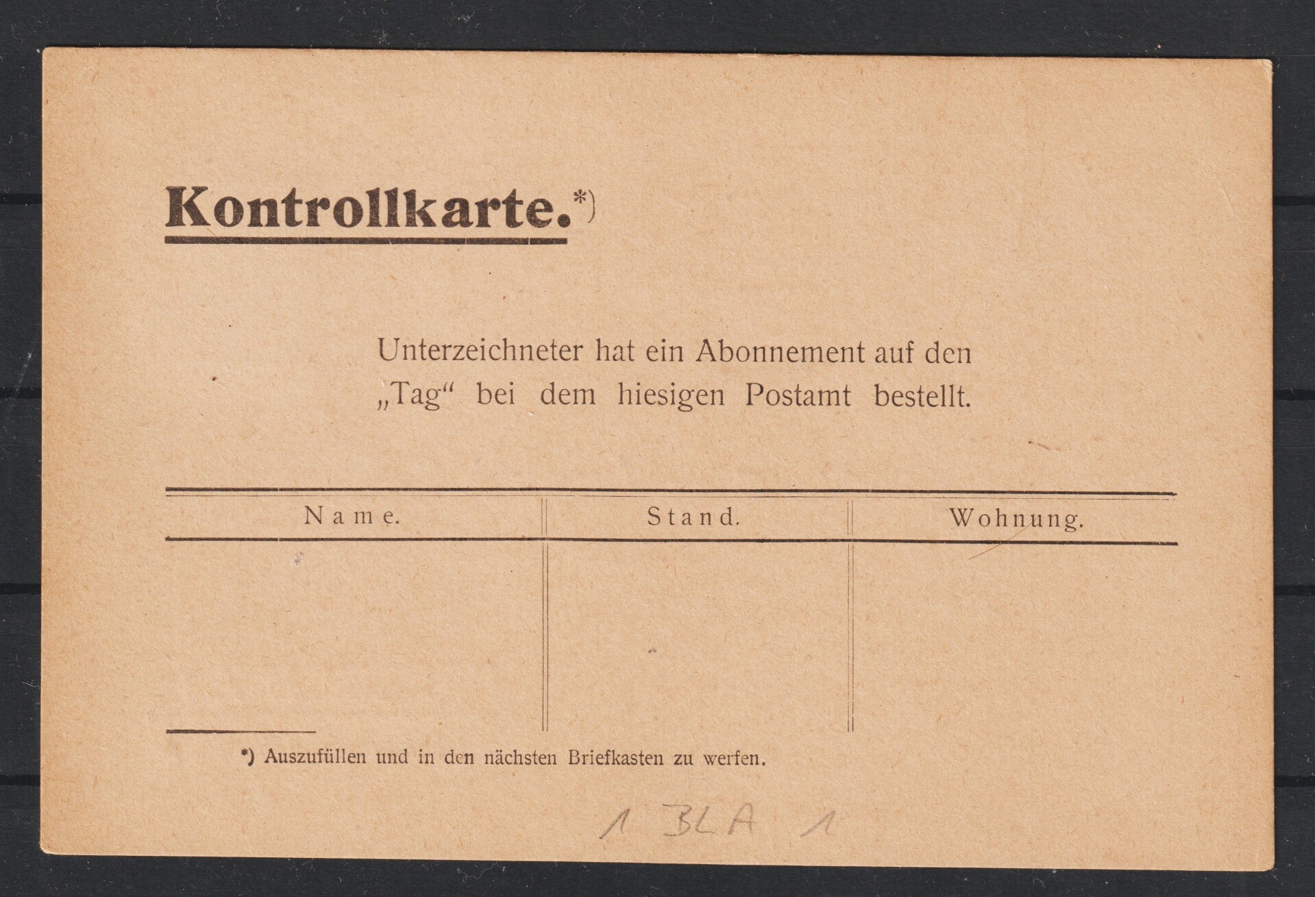 Bücherzettel, Marke mit Perfin / Firmenlochung: BLA = Berliner Lokal-Anzeiger