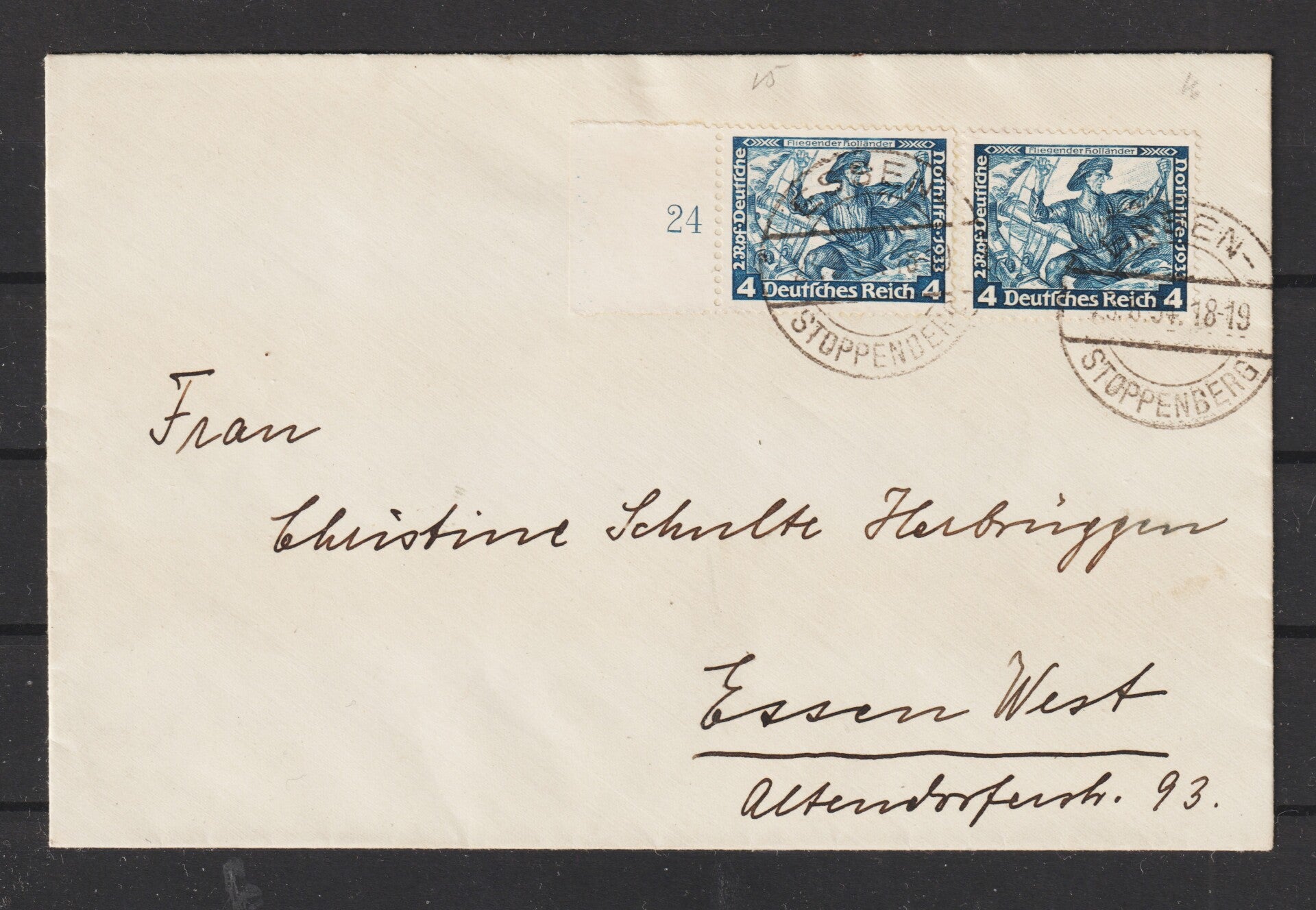 MiNr. 500 A (mit Seitenrand) + B auf portogerechten Brief im Ortsverkehr ESSEN 23.6.34