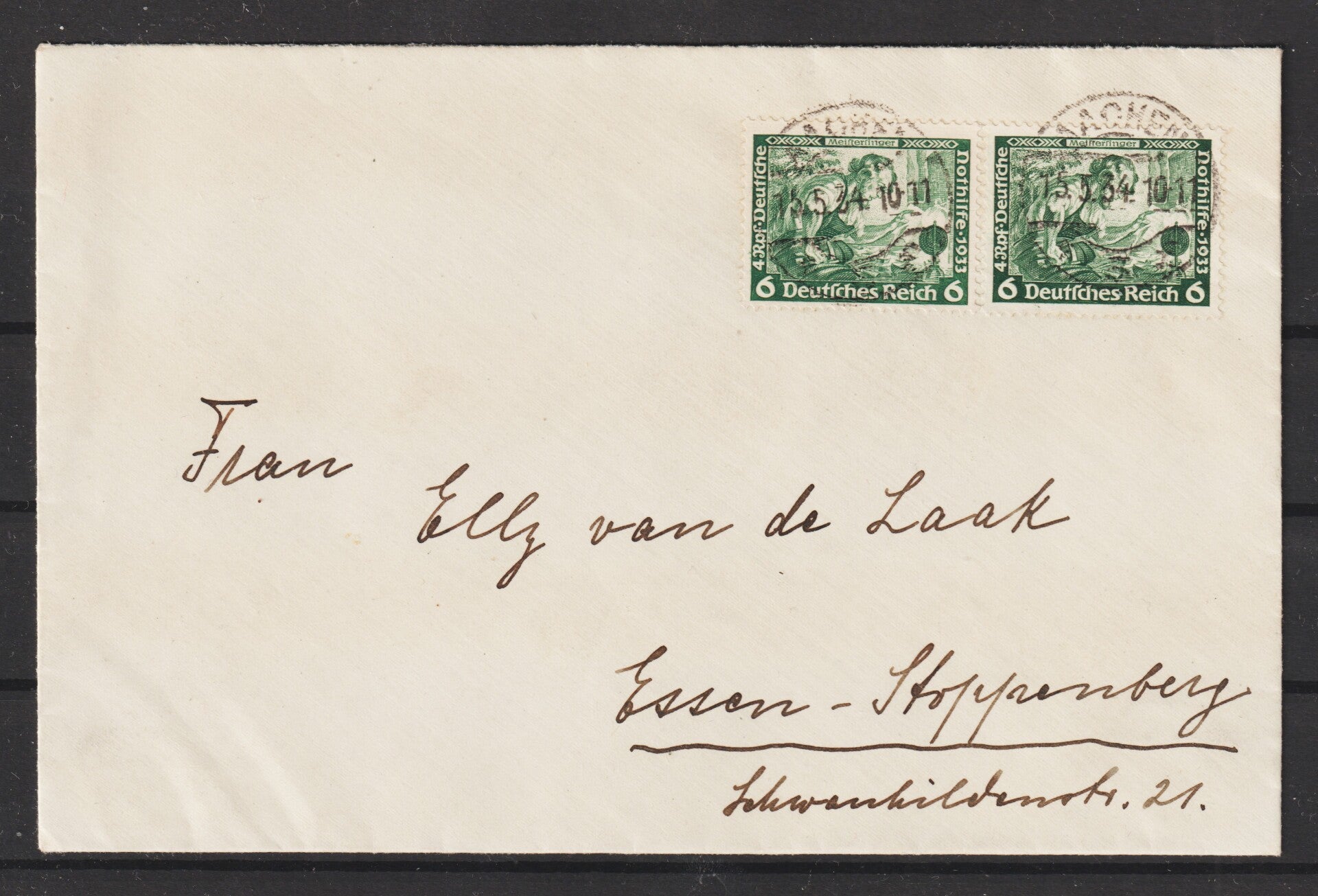 MiNr. 502 auf portogerechten Brief im Fernverkehr AACHEN 15.5.34 nach Essen