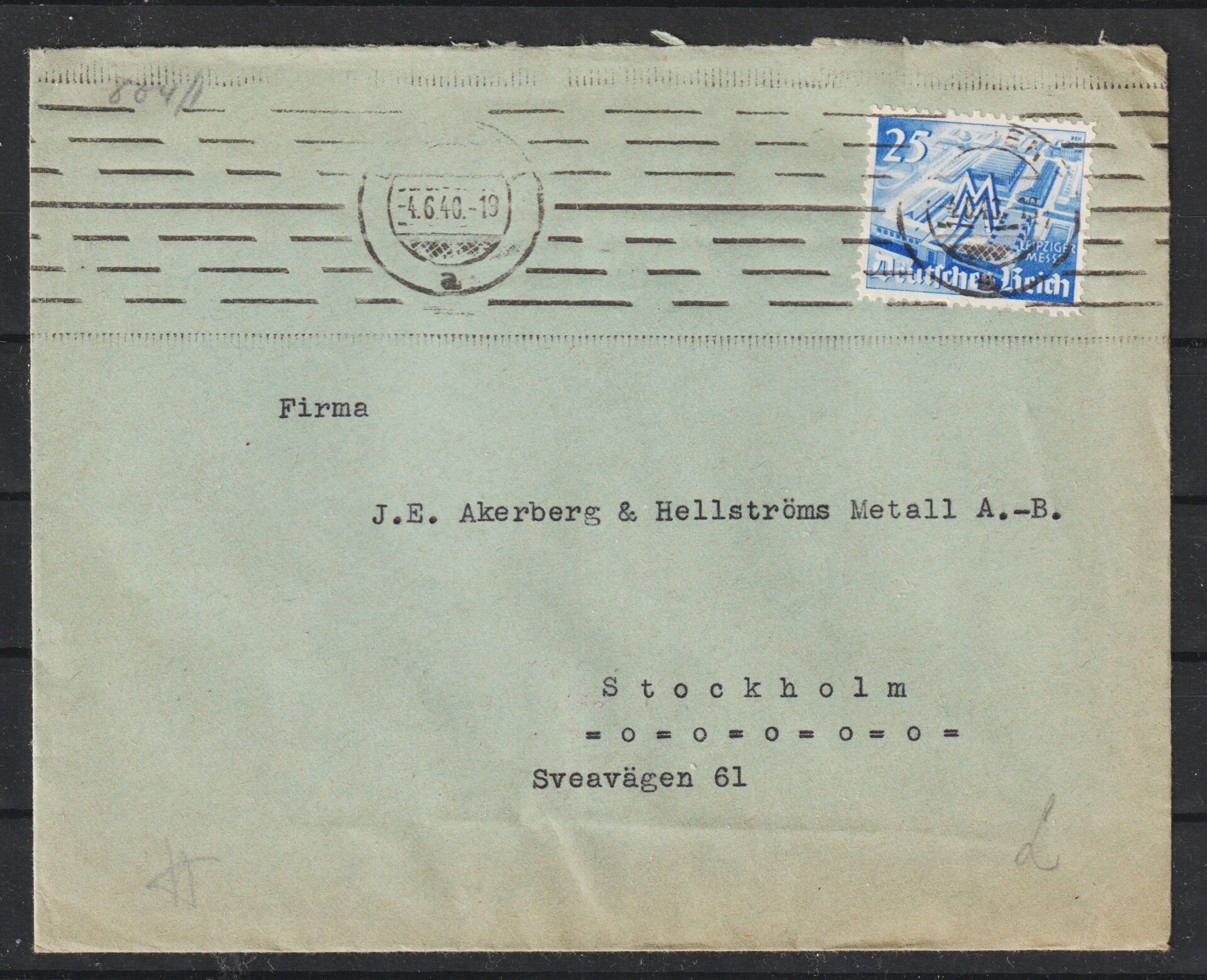 MiNr. 742 Einzelfrankatur auf Brief von BREMEN am 4.6.40 nach Stockholm, Zensiert durch OKW