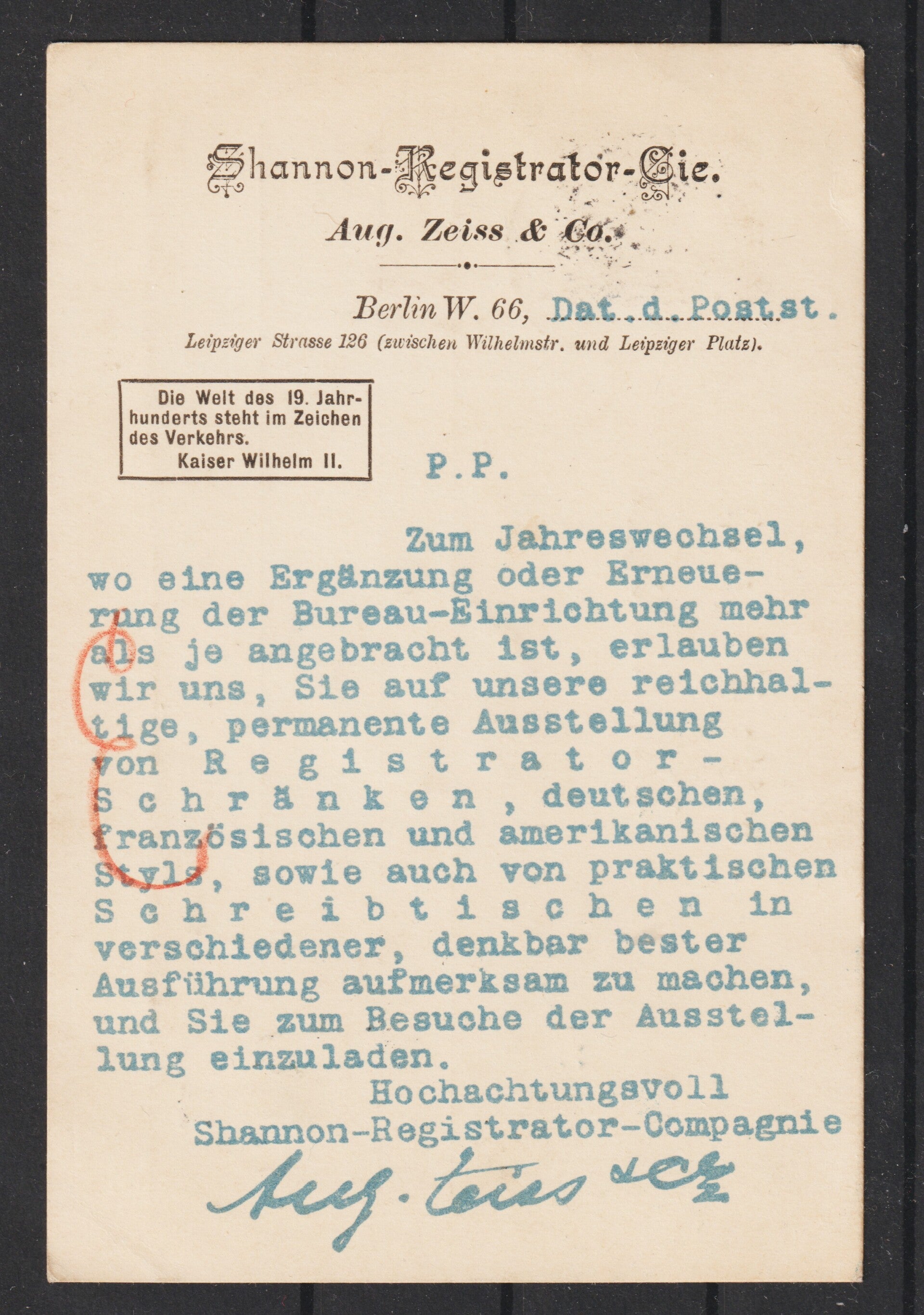 MiNr. 46 auf Firmen Postkarte, Firmenlochung A.Z. der Firma “August Zeiss Co”