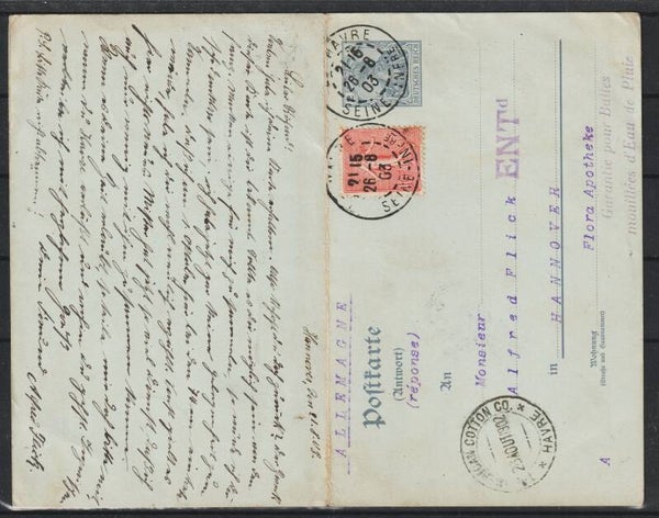 Ganzsache P 66 HANNOVER 21.8.03 nach Frankreich und zurück mit französischer Zusatzfrankatur