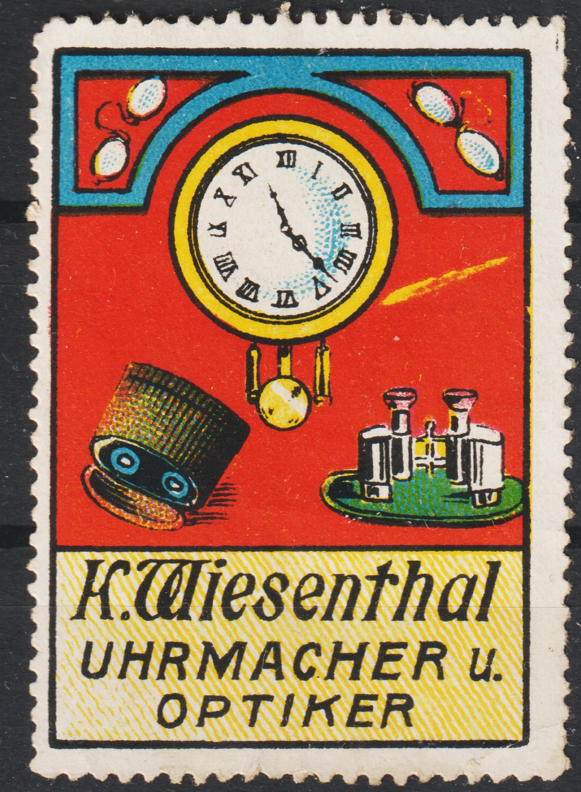 Vignette, Reklamemarke "K. Wiesenthal Uhrmacher u. Optiker", 100 % Original