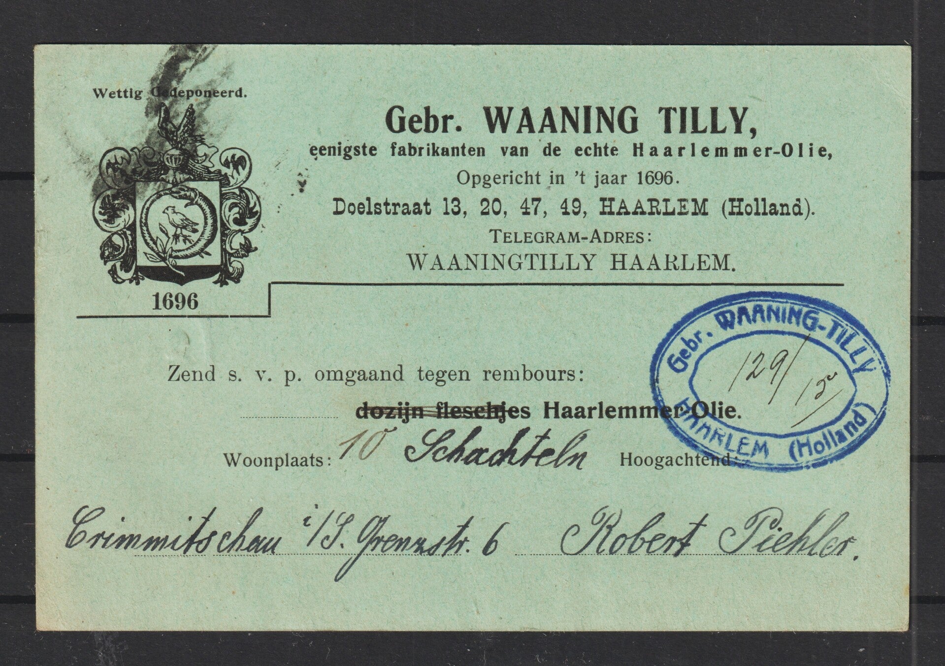 MiNr. 145 MeF auf Postkarte nach Haarlem, CRIMMITSCHAU 6.4.21 (b180)