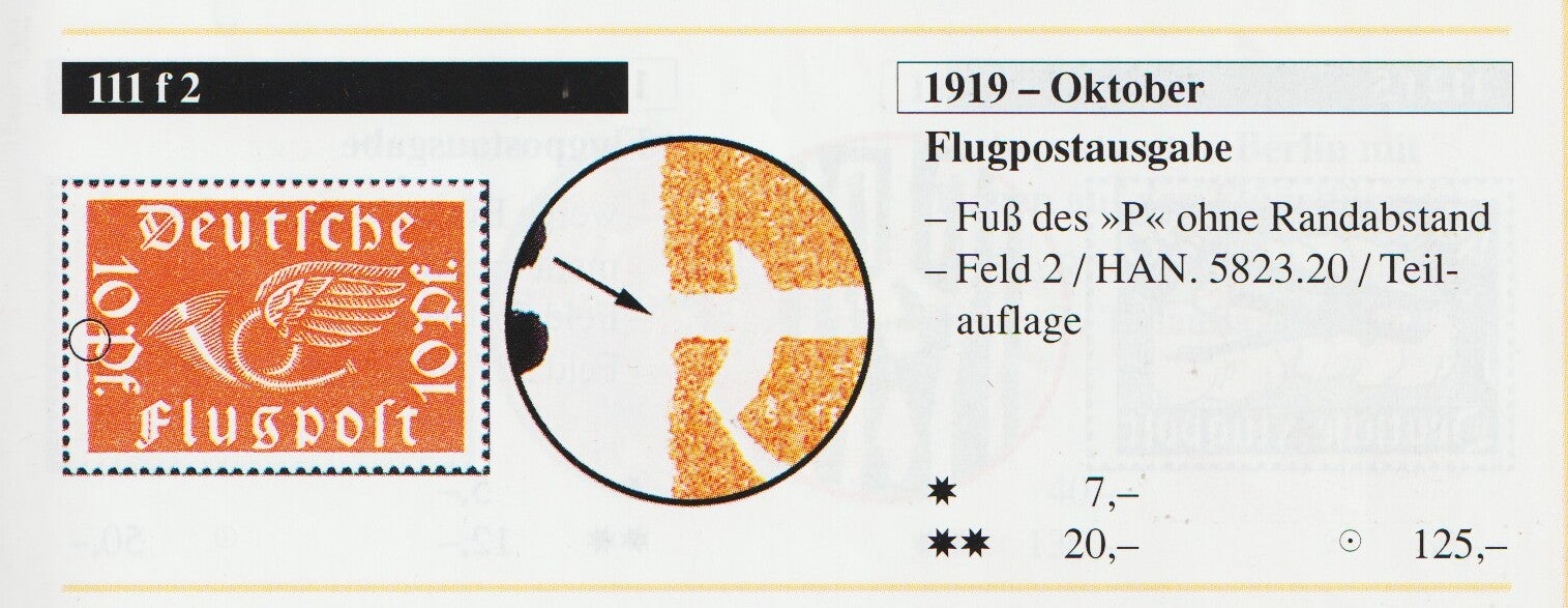 MiNr. 111 postfrisch, Plattenfehler f2, Katalogpreis: 20,00 €