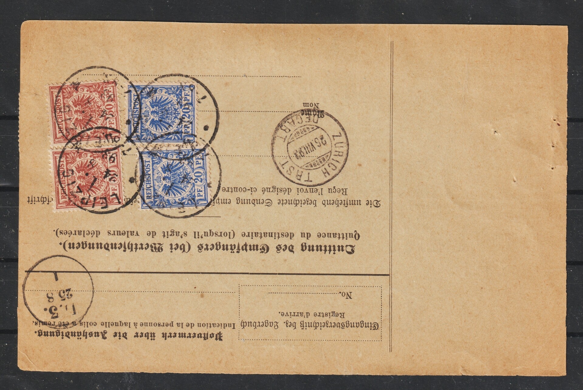MiNr. 50 (4x), 48 (2x) auf Paketkarte LEIPZIG 24.8.93 (aska2)