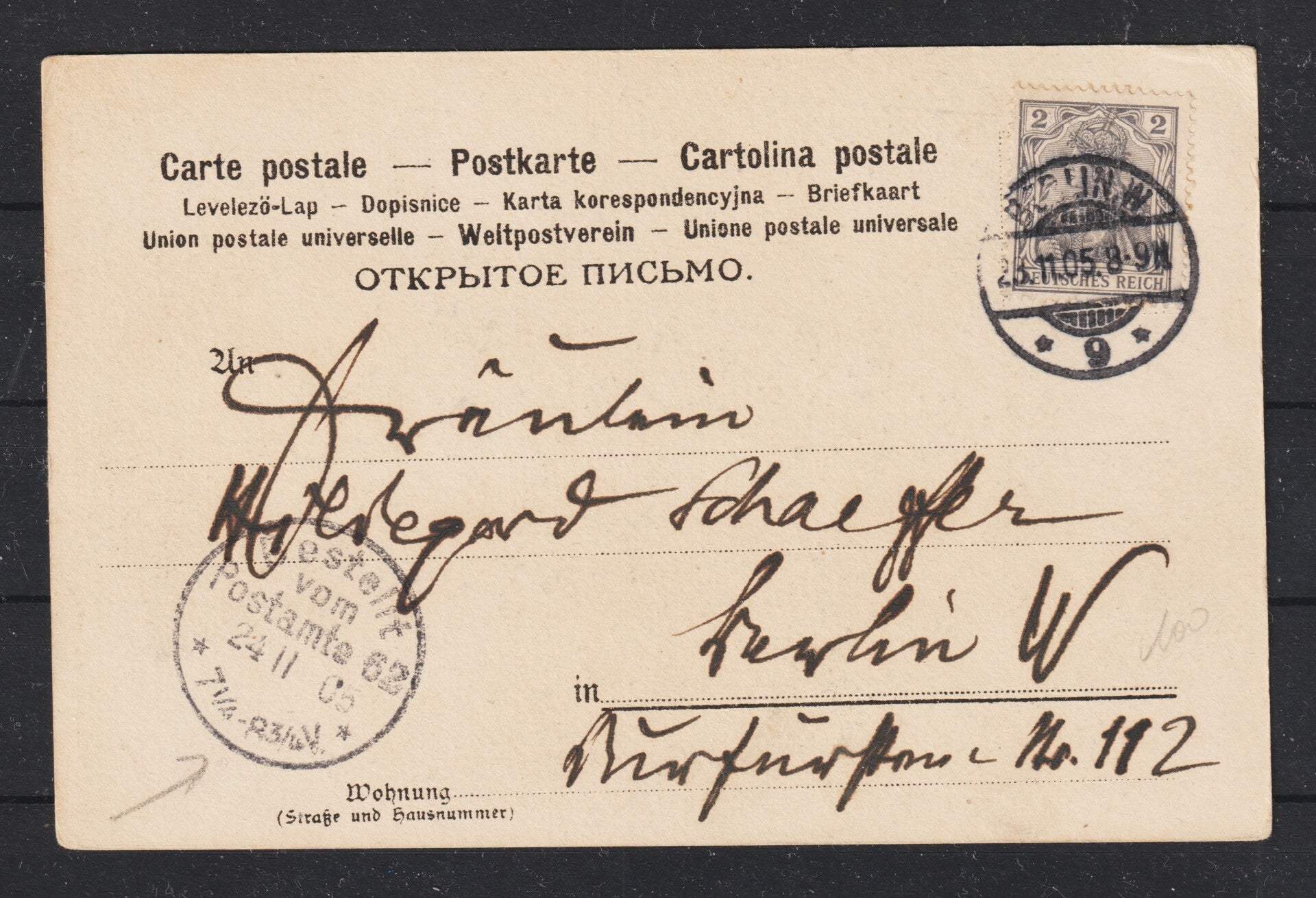 MiNr. 83 I EF auf Postkarte BERLIN 23.11.05 (a5-13-4)