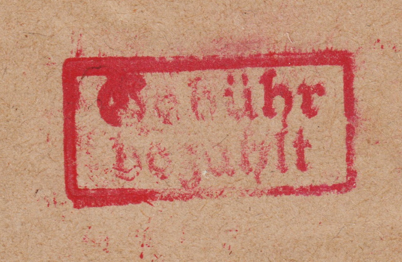 roter R2 "Gebühr bezahlt" 2,8x1,3cm, Rheinische Vulkanfibre Industrie BONN 14.9.23