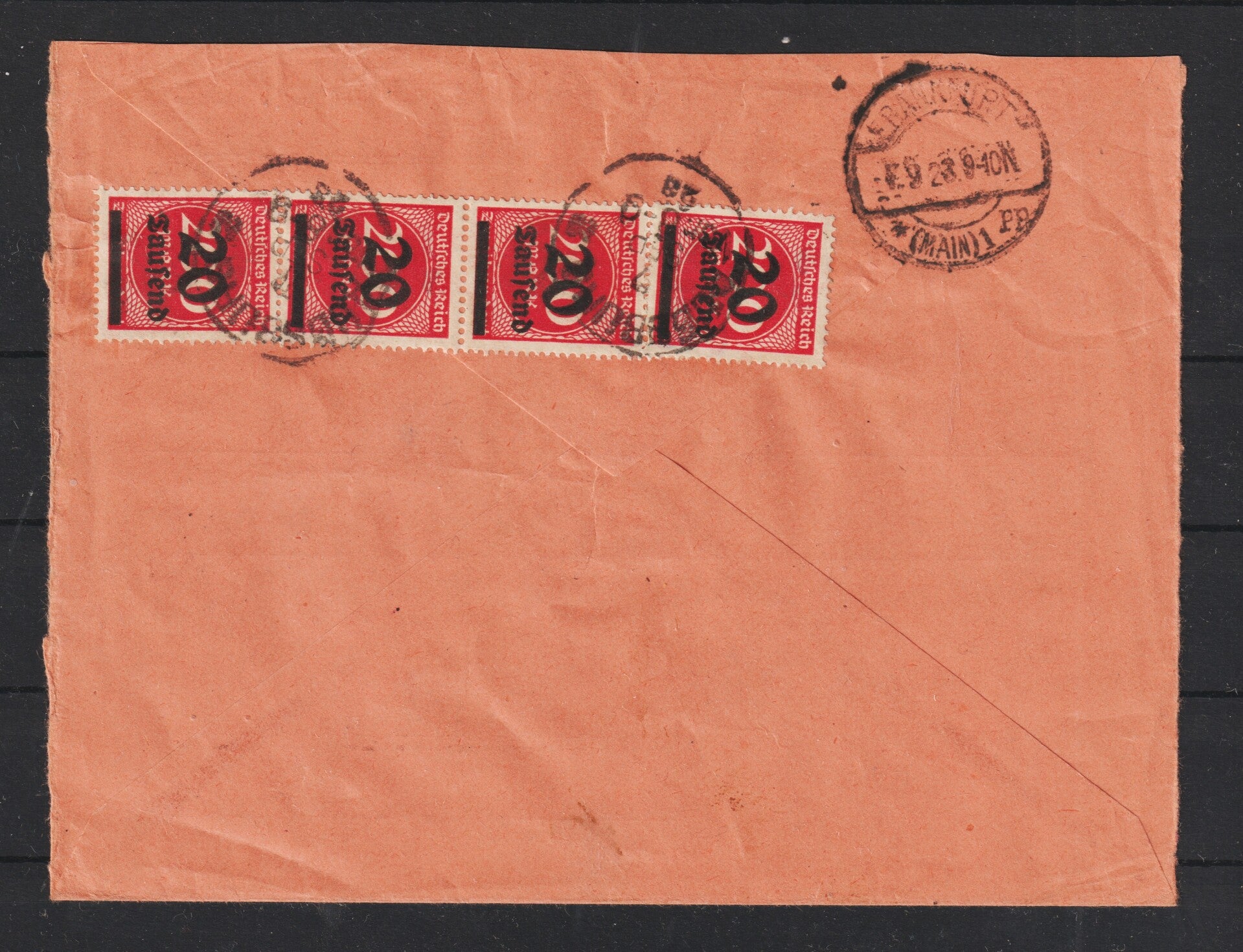 MiNr. 282 II (6x), 284 auf R-Brief AUGSBURG 7.SEP.23 (as277)