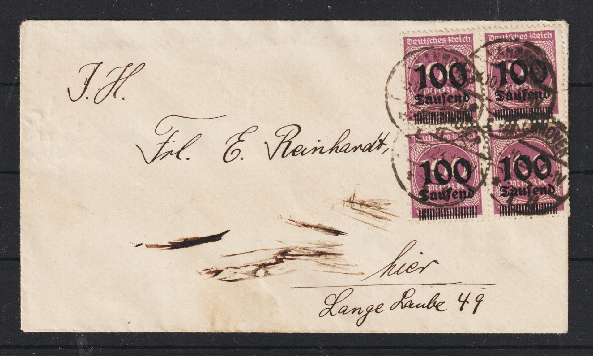 MiNr. 289 OPD Hannover, Mef, portogerechte Drucksache, HANNOVER 3.10.23 (as277)