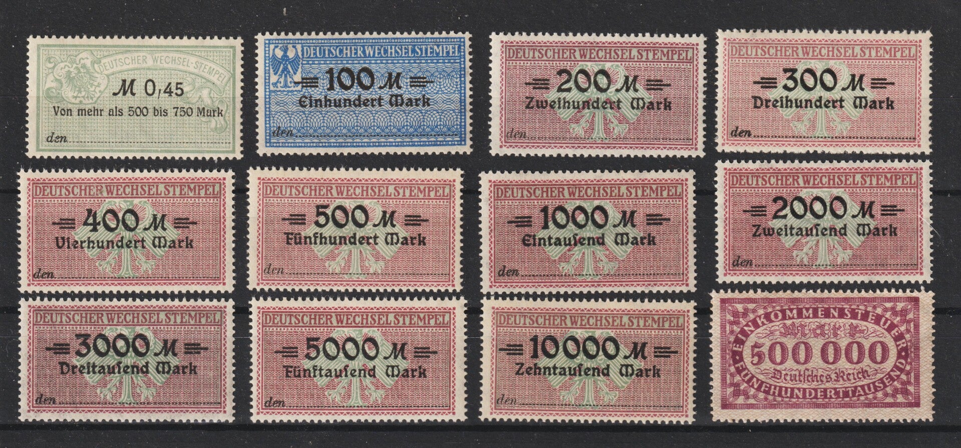 Deutsches Reich 12 Wechsel- u. Steuermarken, einwandfrei postfrisch, sehr seltene Kollektion, die postfrisch kaum noch zu finden sind, sehr selten