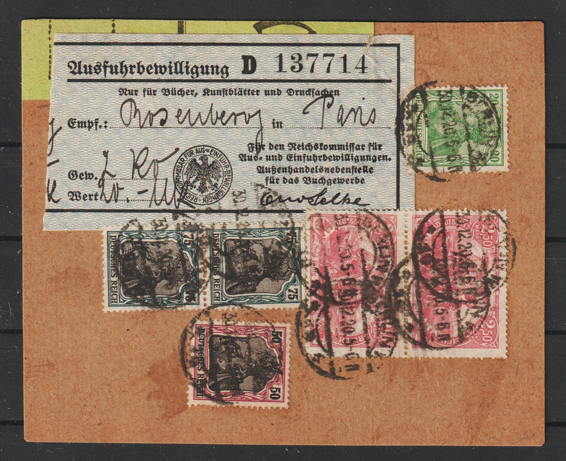 seltene portogerechte (nach Büchertarif) Buch-Ausfuhrbewilligung vom 30.12.20 nach Paris, geprüft