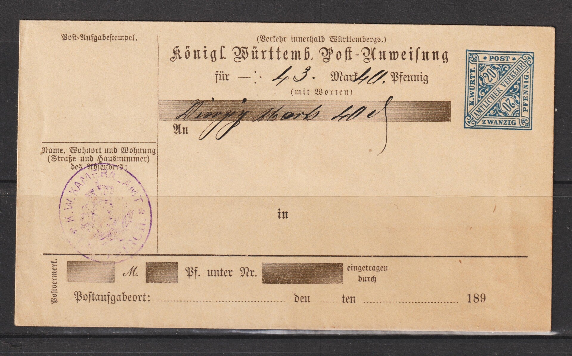 Württemberg Ganzsache Postanweisung ADU 22 (b237)