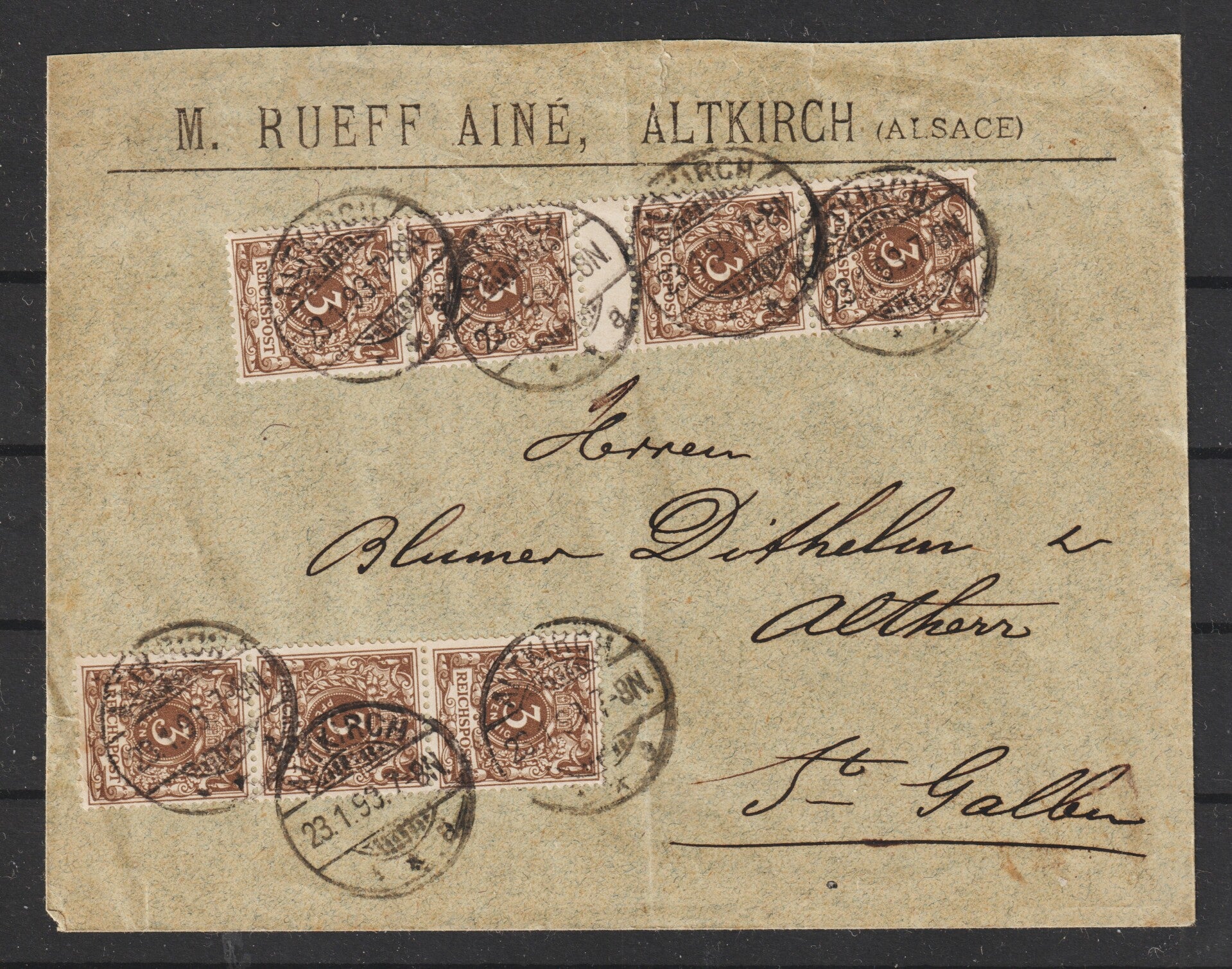 MiNr. 45 Zwischensteg auf Brief von ALTKIRCH 23.1.99 nach St. Gallen