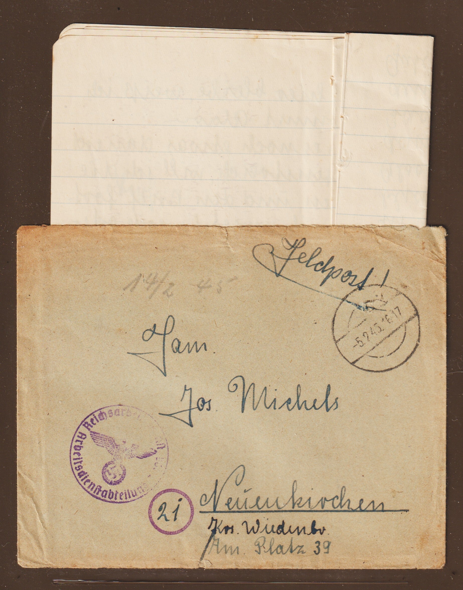 Feldpostbrief m. Inhalt aus dem RAD Lager Häckel 5.2.45