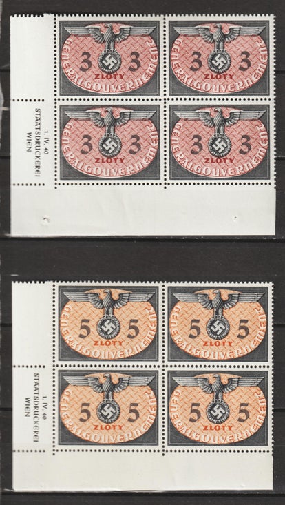 Generalgouvernement Höchstwerte MiNr. D 14 + D 15 postfrische Bogenecken, Katalogpreis: 50,00 €