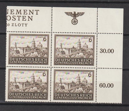 Generalgouvernement MiNr. 80 Oberrand postfrisch ** Oberrand mit Hoheitszeichen