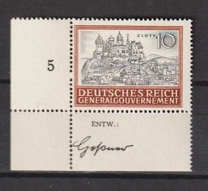 Generalgouvernement MiNr. 64 postfrische Bogenecke mit Entwerferzeichen