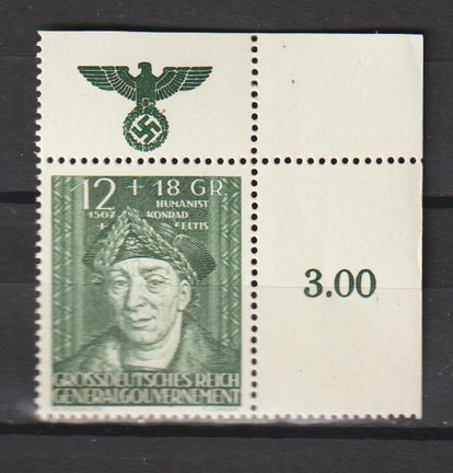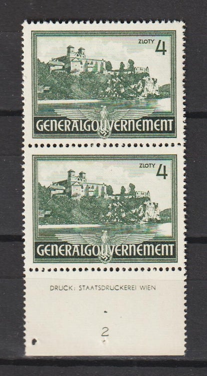 Generalgouvernement MiNr. 76 Oberrand Bogenecke postfrisch, mit Hoheitszeichen + Druckerzeichen: STAATSDRUCKEREI WIEN