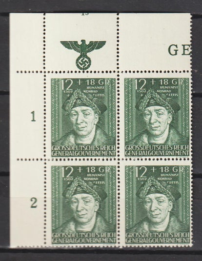Generalgouvernement MiNr. 52-55 postfrische Oberrand Bogenecken mit Hoheitszeichen und Druckerzeichen