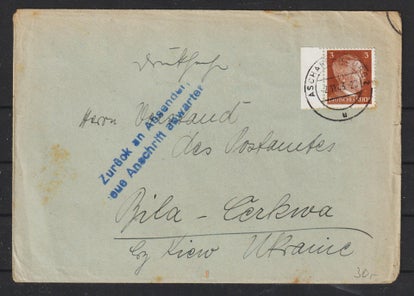 portogerechte Drucksache von Aschaffenburg nach Shitomir, Ukraine vom 3.11.43