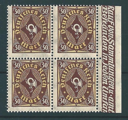 MiNr. 278 postfrischer Viererblock, Plattenfehler IV, Michelwert 35,00 €