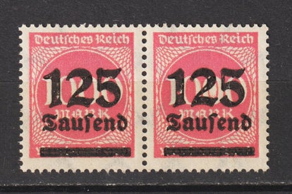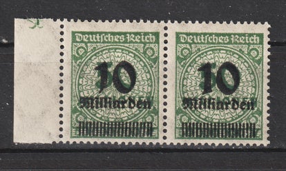 MiNr. 334 postfrisch, Aufdruckfehler: M von Millionen gebrochen (linke Marke) Fahne der 5 ausgebrochen (rechte Marke)