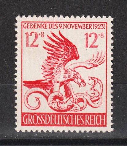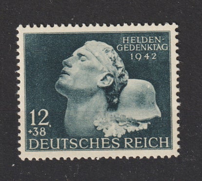 MiNr. 812 postfrisch, Plattenfehler I: D von HELDEN mit Winkel, schwarzer schräger Strich unter 42 von 1942 Michelwert: 65,00 €