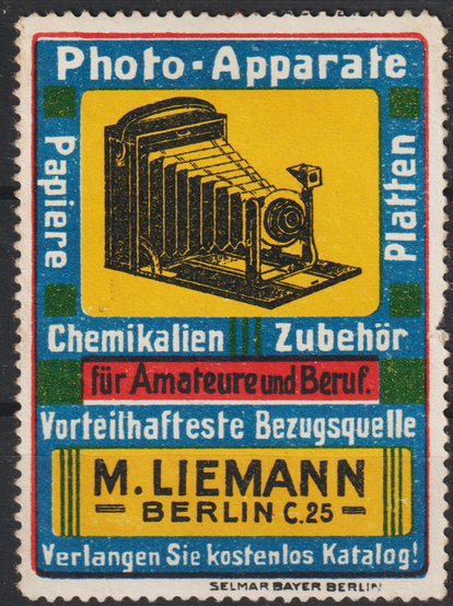 Vignette, Reklamemarke "PHOTO-APPARATE M. LIEMANN BERLIN", 100 % Original
