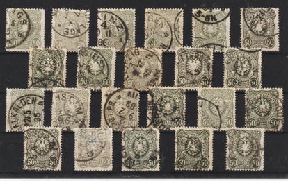 MiNr. 43 gestempelt, 22 Marken, verschiedene Farben