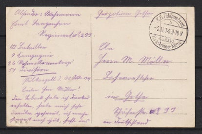 Feldpostkarte, ARLON vom 1.12.14