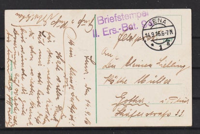 Feldpost Karte aus Jena, Stempel : “Briefstempel II Ersatzbattialon 94”