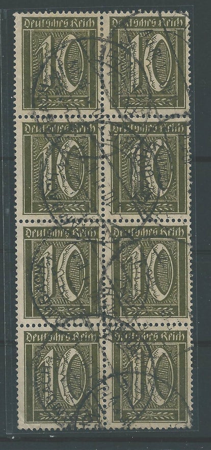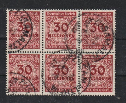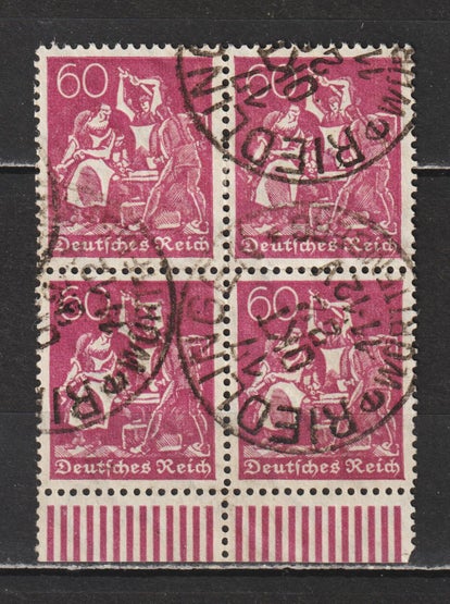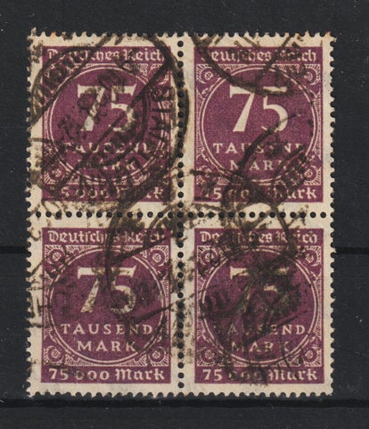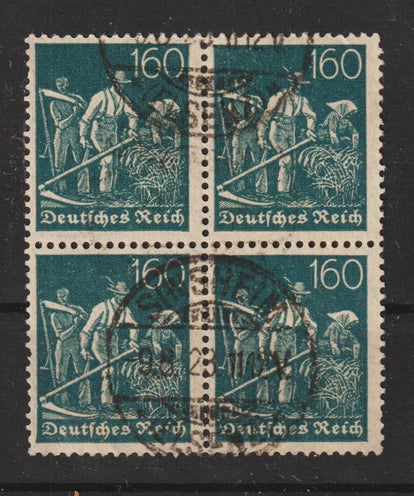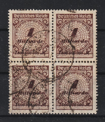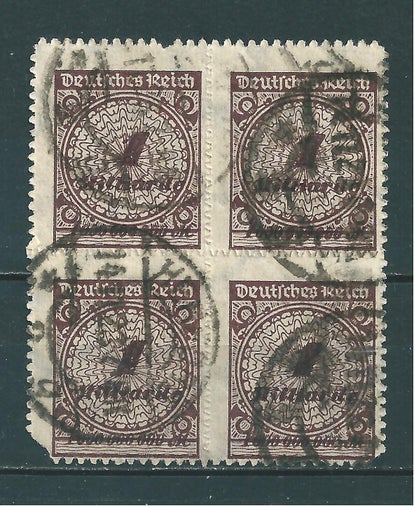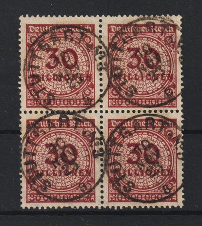 MiNr. 331 gestempelter Viererblock, Katalogpreis: 225,00 € (Inflahandbuch 33 x6) selten