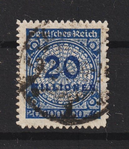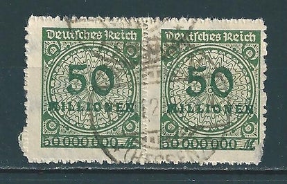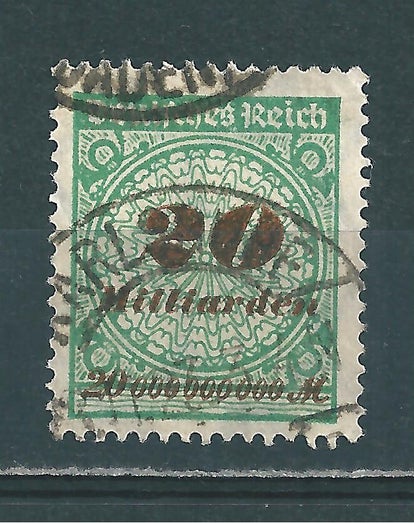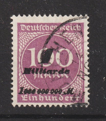 MiNr. 337 gestempelt, Plattenfehler III: Loch unten in der 1 ar von Milliarden beschädigt, sehr selten, Katalogpreis: -,-- Liebhaberpreis