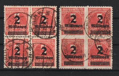 MiNr. 105-106 gestempelte Viererblöcke, Michelwert: 44,00 € + VB Zuschlag
