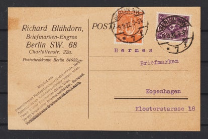MiNr. 104 [2x), 115, 149. 168 auf Briefvorderseite nach Kopenhagen 24.2.22 (s30181)