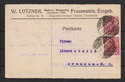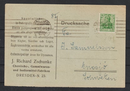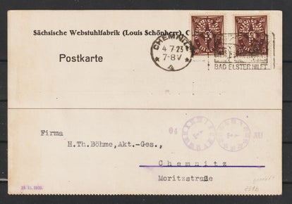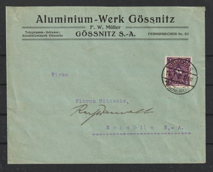 MiNr. 317 W portogerechte Einzelfrankatur 15.10.23 der Firma "Ernst Liebers Platinenfabrik" Kändler b. Limbach nach Hohenstein Ernstthal