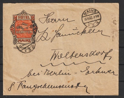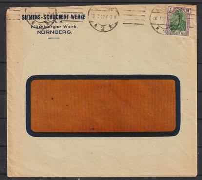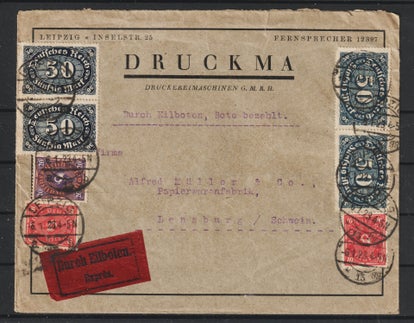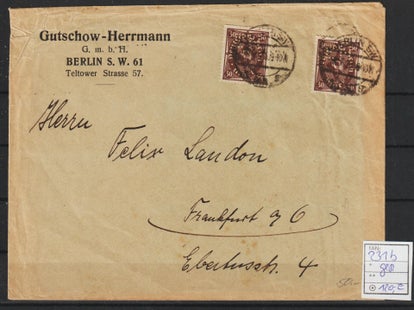 MiNr. 317 W portogerechte Einzelfrankatur 15.10.23 der Firma "E. HEUBACH & Co" Berlin Tempelhof nach Erfurt, Firmenlochung EH