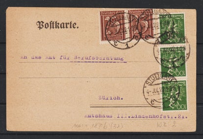 MiNr. 336, 329 portogerechte Auslandskarte in die Schweiz vom 29.11.23, Letztag der Portoperiode 26, diese Frankatur war nur 5 Tage (inkl. Sonntag) möglich, exzellente Erhaltung