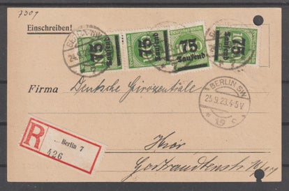 MiNr. 317 W Mehrfachfrankatur portogerechter R-Brief PP20 12.10.23 (s23001)