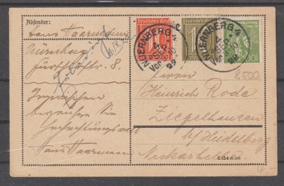 R-Brief mit Mischfrankatur Bayer, Deutsches Reich von Kronach nach Nürnberg vom 15.Apr.20