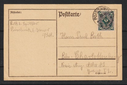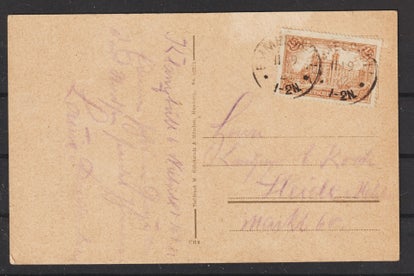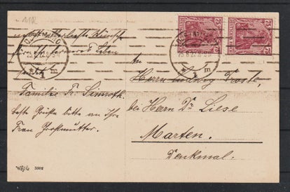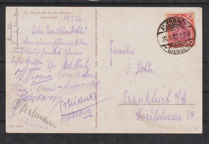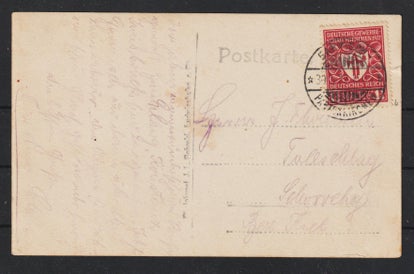 MiNr. 327 AW Einfelfrankatur, auf portogerechter Postkarte im Fernverkehr, gestempelt: 10.4.18 ! (Hier war der Postbeamte nicht ganz bei der Sache, Zahlendreher) laut Rückseite 14.11.23, Bearbeitungsstempel 17.11.23