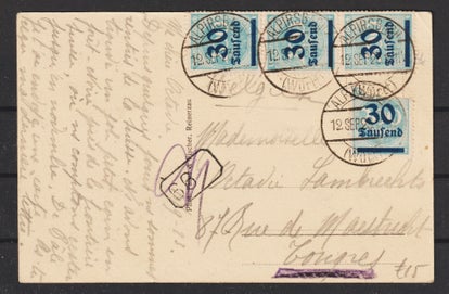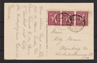 MiNr. 317 W Einzelfrankatur auf portogerechten Brief von Hamburg nach Geisweid vom 10.10.23 Ersttag der Portoperiode 20