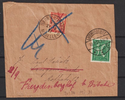 OPD Halle Gebührenmarken auf Brief, private Ausgabe die sofort verboten wurde, aber mit Stempel HALLE und SCHAFSTÄDT vereinzelt auf echt gelaufenen Briefen bekannt