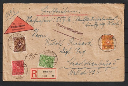 MiNr. 105, 106 (2x) auf R-Brief im Ortsverkehr Berlin vom 31.5.19