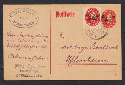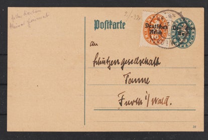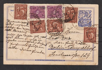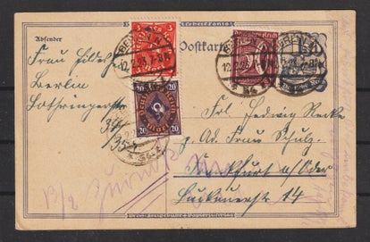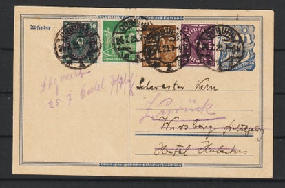 Ganzsache P 150 gestempelt am 5.3.24 - ausserhalb der Verwendungszeit (Nov 1922 - 30.9.23), mit 10 Pfennig Nachporto belegt
