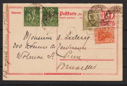 Ganzsache Karten P 140 + MiNr. 143, 197 vom 16.1.22, portogerecht im Fernverkehr von DORTMUND nach ESSEN