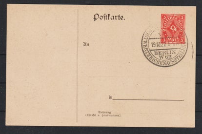 Ganzsachen Karte P 146 mit 150 Pfennig portogerecht im Ortsverkehr in der Portoperiode 8 (1.7.-30.9.22) vom 22.9.22